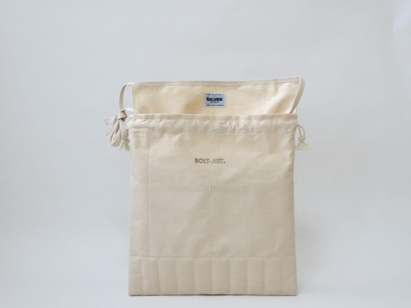 底面に中綿キルティングをほどこすことで、荷物を入れた時の形状を安定させます。