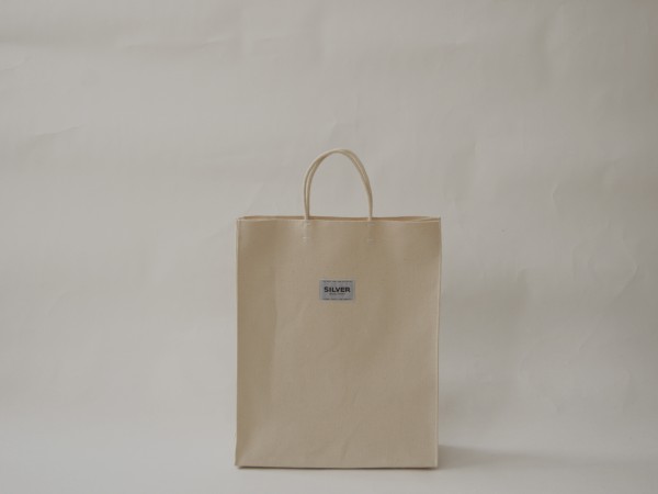 よく見かけるお買い物袋を厚手の6号帆布で製作しました。 ちょっと使いに最適なSサイズです。 本体の上部は、生地の耳(端)をそのまま使用しているのでほどけてきません。 型崩れしないように底板付きです。
