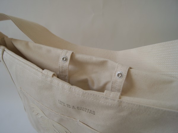 中厚の6号,8号と薄手の10号帆布を部分的に使いわけ、柔らかくふっくらとした風合いに変化する帆布のイメージをマッチングさせました。