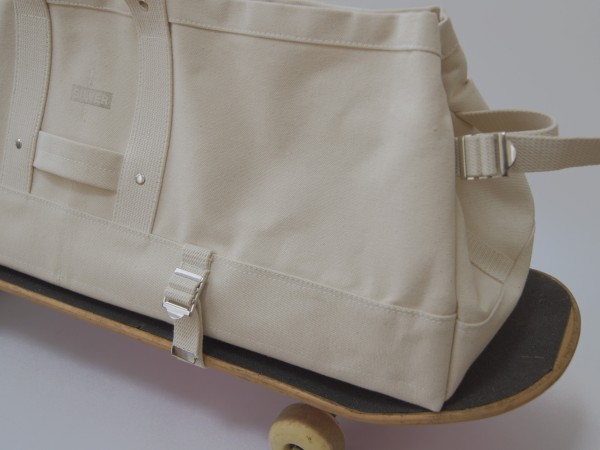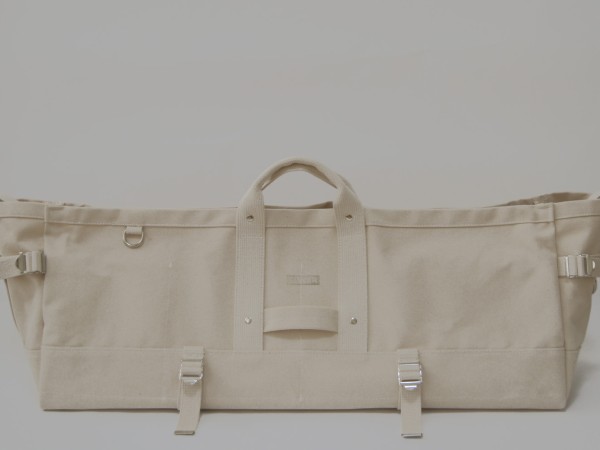 かなりの長さのモノを持ち運ぶ際は、サイドを絞り込み折りたためば薪バッグのように使用することも出来ます。