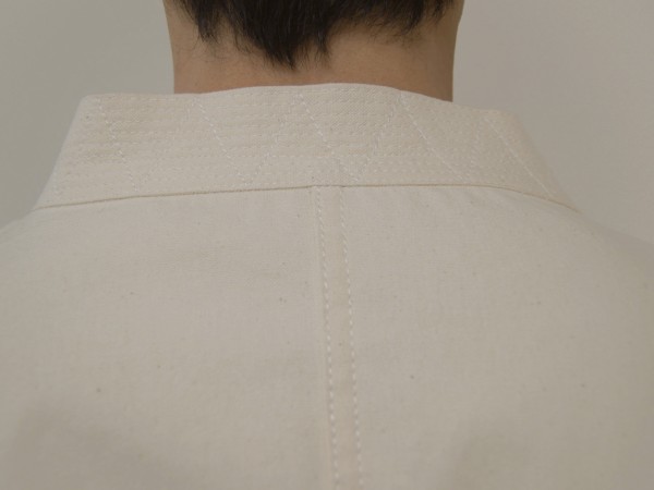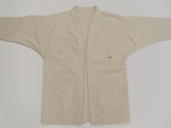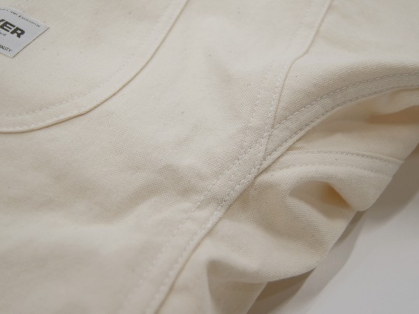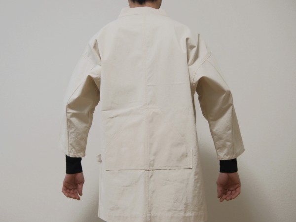 10号帆布を使用した襟なし、半纏ベースのカバーオールです。
