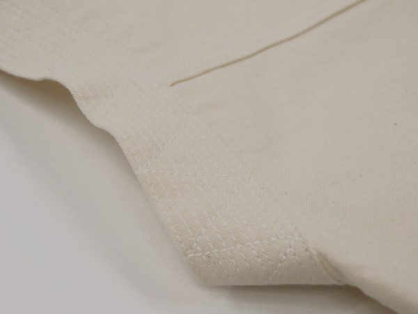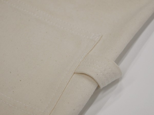 巻き二重環縫いミシンを使用することで、経年使用のパッカリングを想定し、帆布特有のヤレ感が風合いを増すでしょう。
