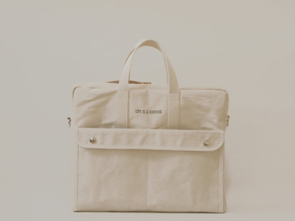 縦長の大きめの外ポケットがミリタリーのヘルメットバッグのような外観で、ブリーフケースとしても使用できます。