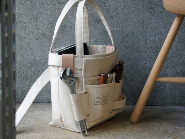 工具入れのツールポーチとトートバッグが一体となったトートバッグです。