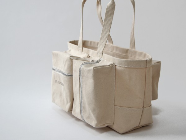 6号帆布を使用した舟型のトートバッグです。 大きく飛び出たマチ付きのポケットが特徴的です。 舟型にはめずらしく取っ手が長めなので、肩掛けも可能です。 内側にもポケットが一つ付いています。