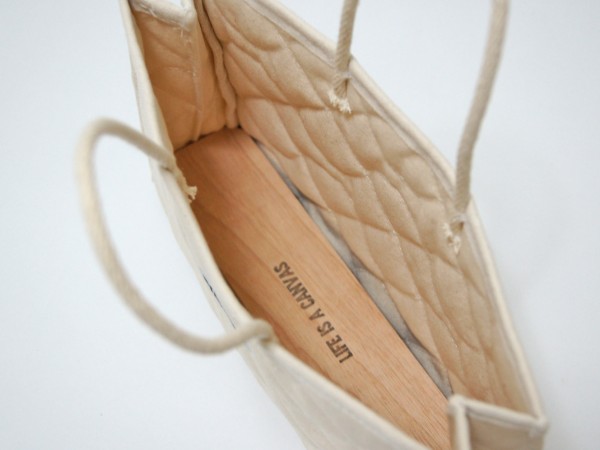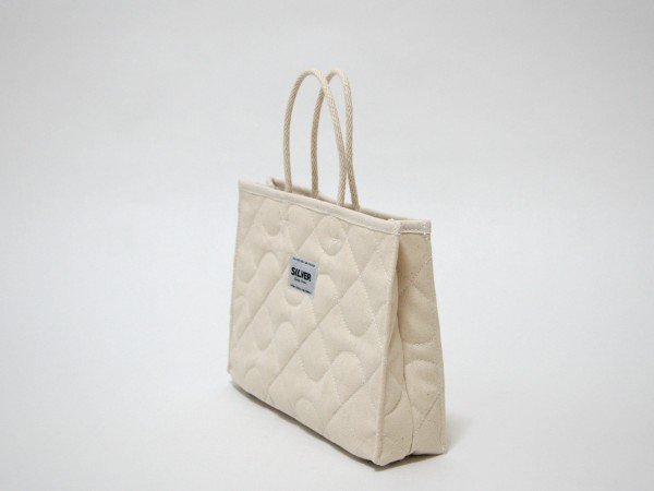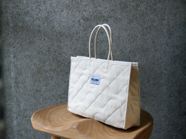 二枚重ねの10号帆布の間に中綿を挟んでオリジナルのキルティングステッチをほどこしています。