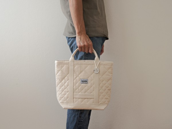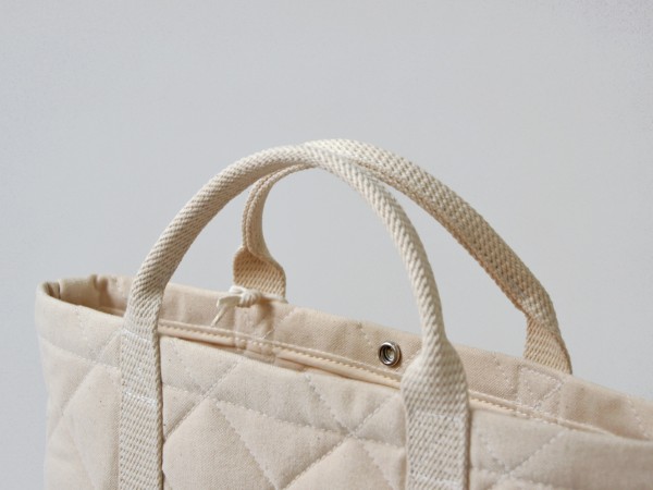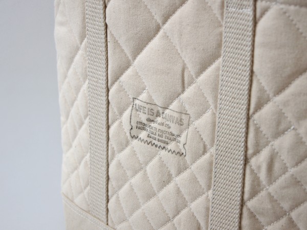 二枚重ねの11号帆布に中綿を挟んでオリジナルのキルティングステッチをほどこしたトートバッグです。