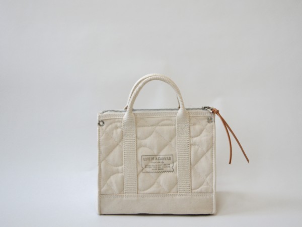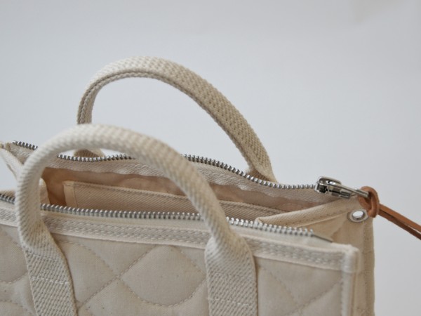 二枚重ねの11号帆布の間に中綿を挟んでオリジナルのキルティングステッチをほどこしています。