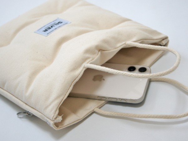 11号帆布に厚めの中綿を3枚挟んでクッション感を出しています。