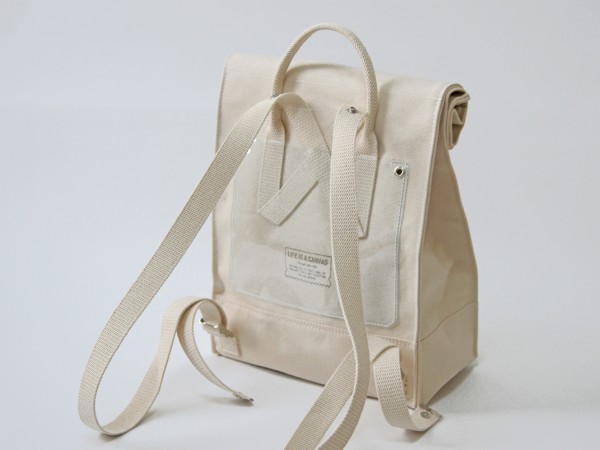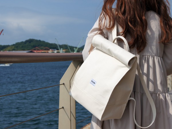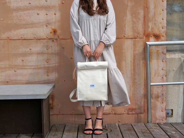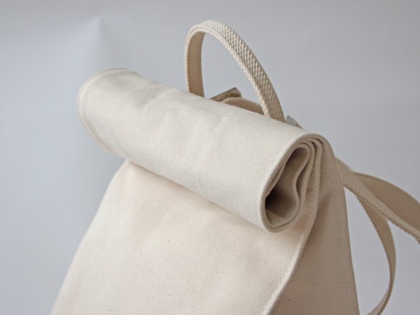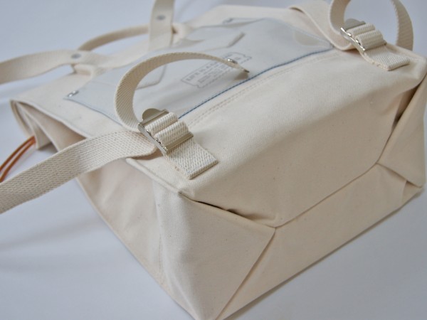 厚手の4号帆布を使用した紙袋のようなフォルムが特徴的なリュックサックです。