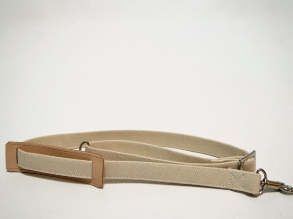 トートバッグ用のショルダー紐です。 2.5cm幅の帆布素材を使用し、ヌメ革の肩アテが付属します。 長さ~100cmまでの変動タイプです。