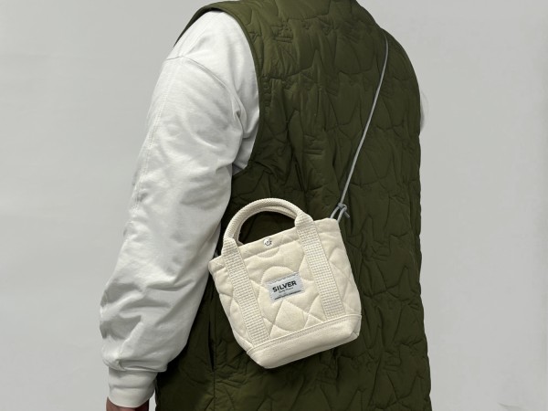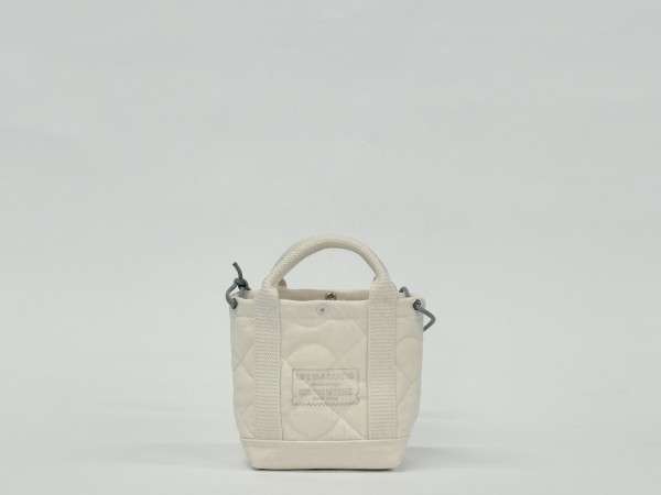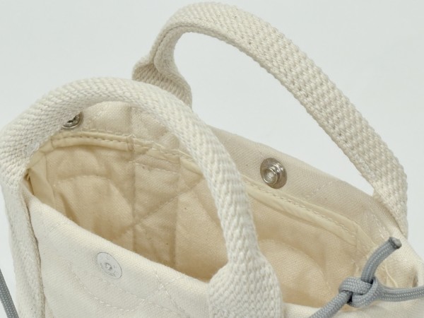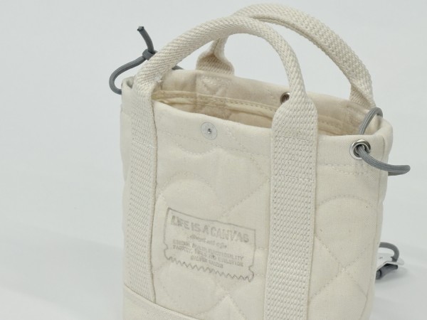 二枚重ねの11号帆布の間に中綿を挟んでオリジナルのキルティングステッチをほどこしています。