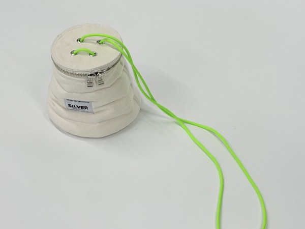 蓋つきのオブジェをイメージした小ぶりなトートバッグです。