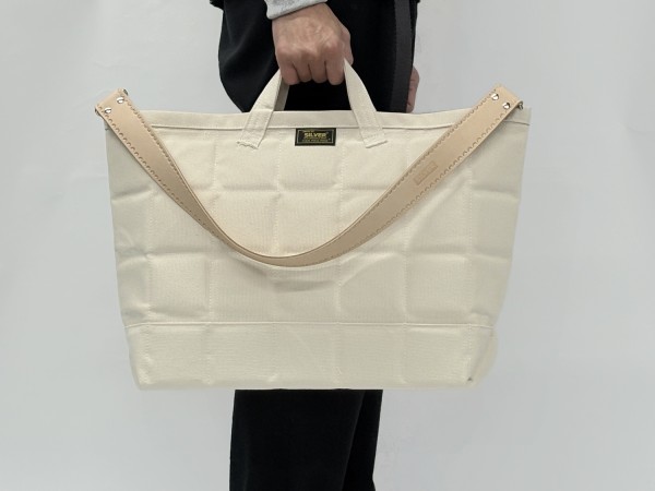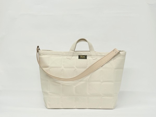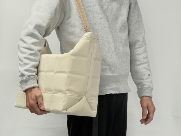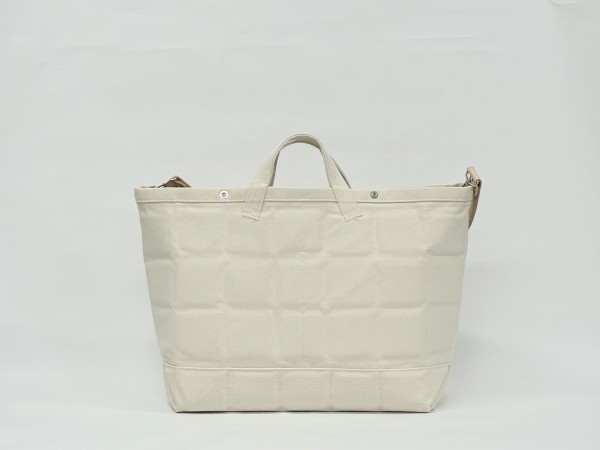 2枚重ねの6号帆布にキルティングステッチをほどこした超重量級トートバッグです。