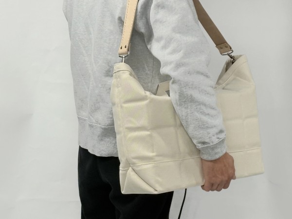 パネルを使用することで、ハードでありながら形状の安定が可能となり、トートバッグでは難しかったBOX形状を維持できるようになりました。